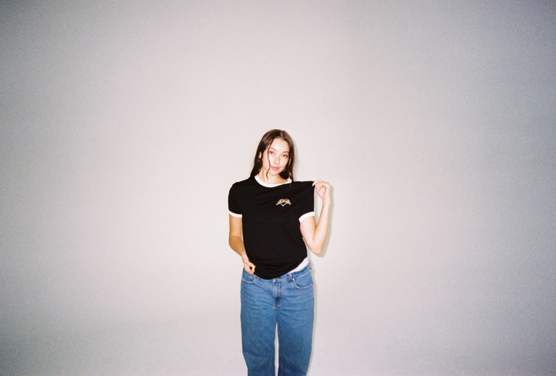 Premium 'Banner’ ringer tee inverted. Printed locally.
